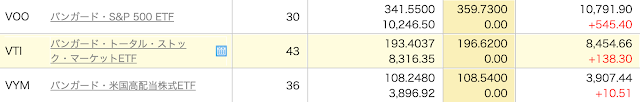 今回の銘柄【米国高配当ETF VOO・VTI・VYM】