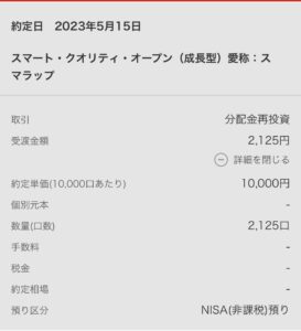 2,125口 受け渡し金額としては、2,125円が再投資されております。